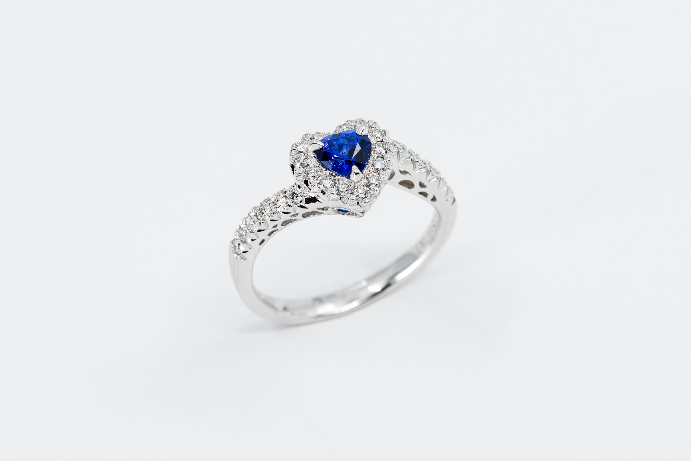 Sinuoso, elegante e dalla lucentezza incredibile: questo è l’anello cuore zaffiro con diamanti Casavola.