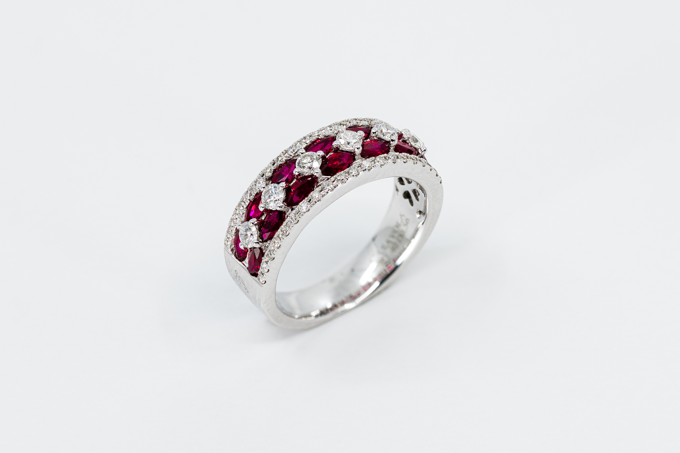 Anello fascione rubini navette Prestige è uno dei gioielli della nostra linea più importante. Una splendida creazione con rubini e diamanti, tutta da scoprire e da ammirare.