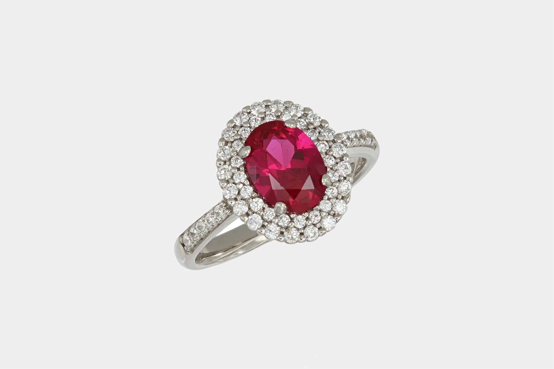 Anello oro bianco double halo con zircone ovale rosso – Cos’è esattamente un gioiello di oreficeria?
