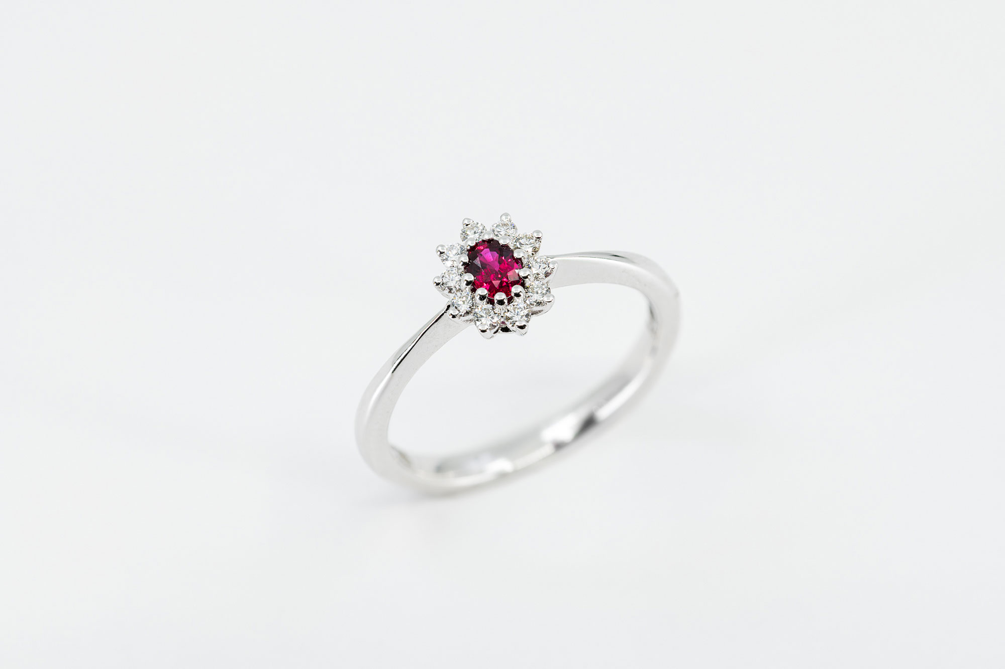 Anello rubino Sunflower baby Nature è un gioiello ispirato alle forme ed ai colori della natura. Un anello in oro bianco su cui spicca uno delizioso rubino taglio ovale. Un gioiello dalle caratteristiche uniche ed inconfondibili. Un’opera della Gioielleria Casavola di Noci (BA).