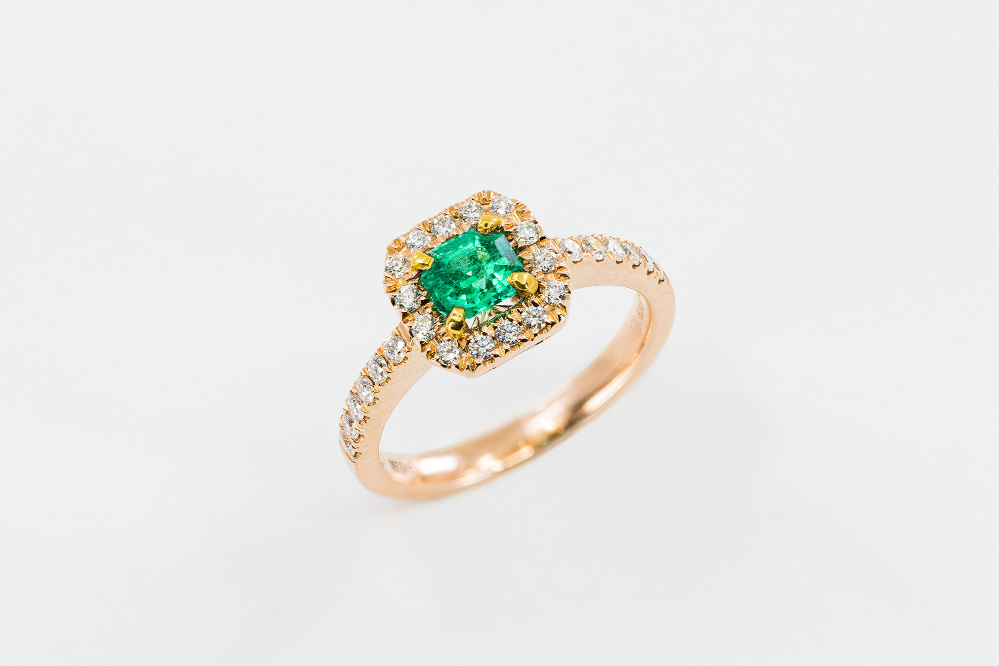 In questo caso, ad abbellire l’anello ci pensa un coloratissimo smeraldo colombiano taglio “quadrato”. Ed essendo una pietra certificata, si ha la sicurezza di avere tra le mani una gemma di altissima qualità.