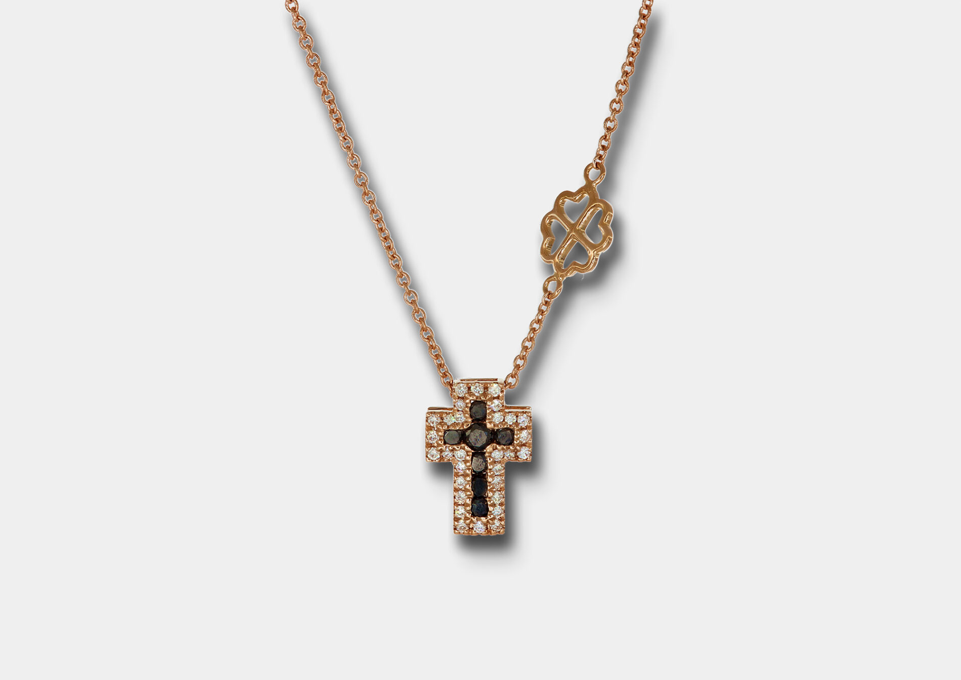 Collana croce Angelus rose diamanti neri – Una realizzazione semplice ma d’impatto