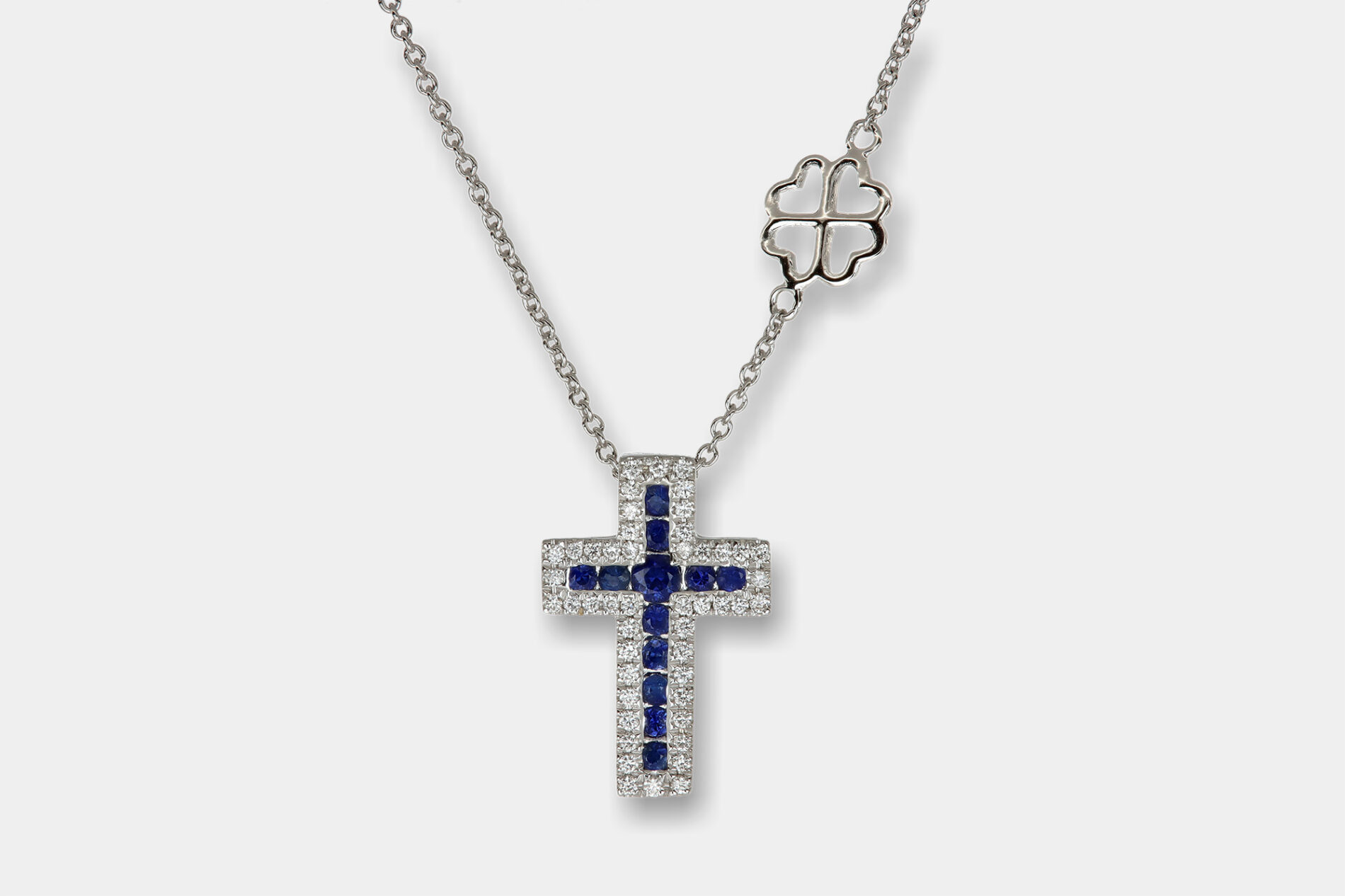 Collana croce Grand Angelus zaffiri White – Una realizzazione semplice ma d’impatto
