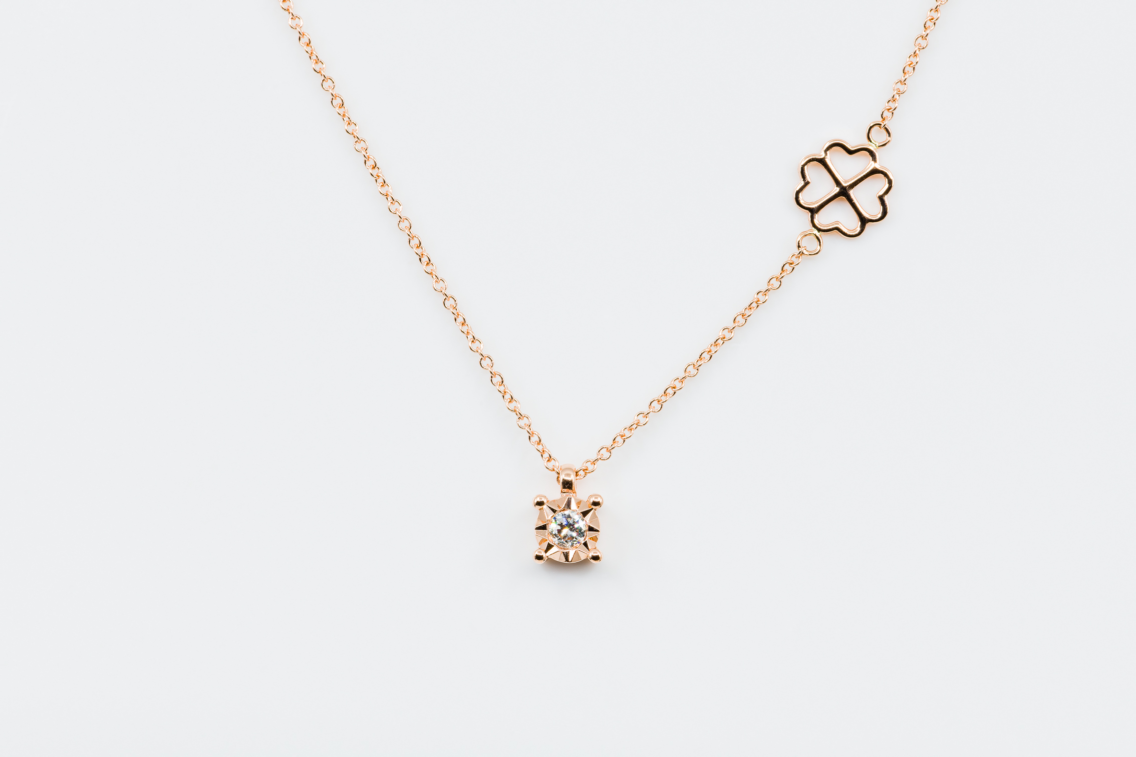 Collana punto luce da donna con diamante bianco modello Starlight Rose in oro rosa realizzata dalla Gioielleria Casavola di Noci (BA).