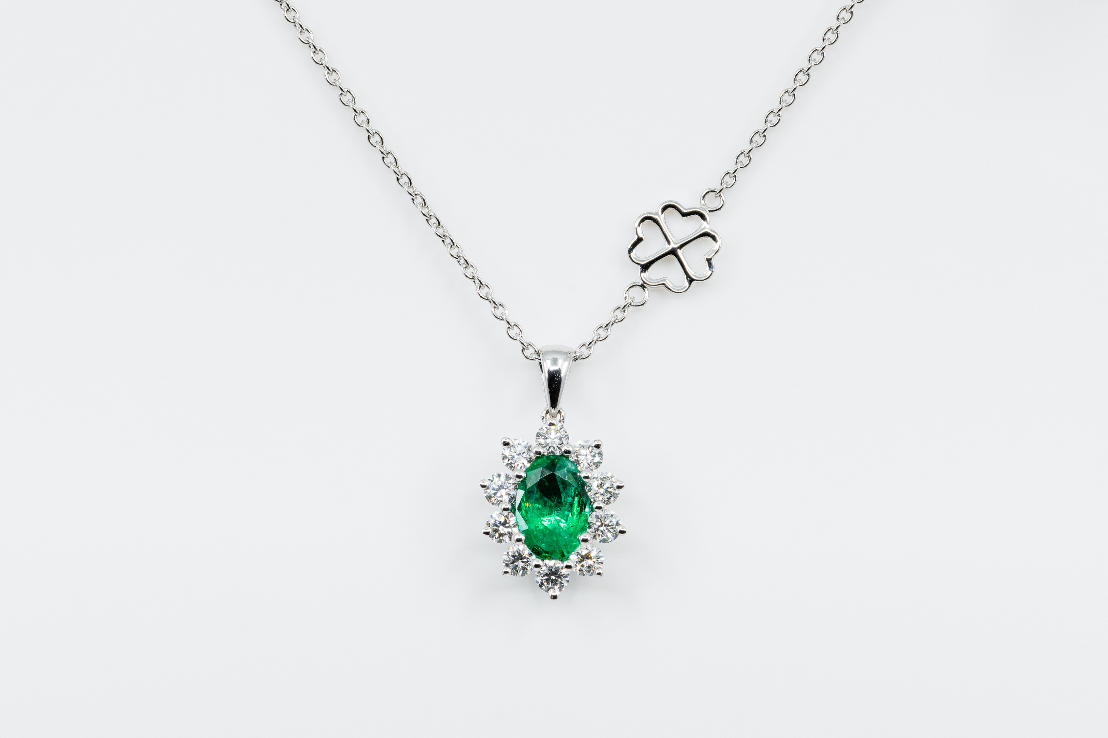 Collana smeraldo Sunflower Nature è un gioiello ispirato alle forme ed ai colori della natura. Una collana in oro bianco su cui spicca un bellissimo smeraldo taglio ovale. Un gioiello con pendente dalle caratteristiche uniche ed inconfondibili. Un’opera della Gioielleria Casavola di Noci (BA).