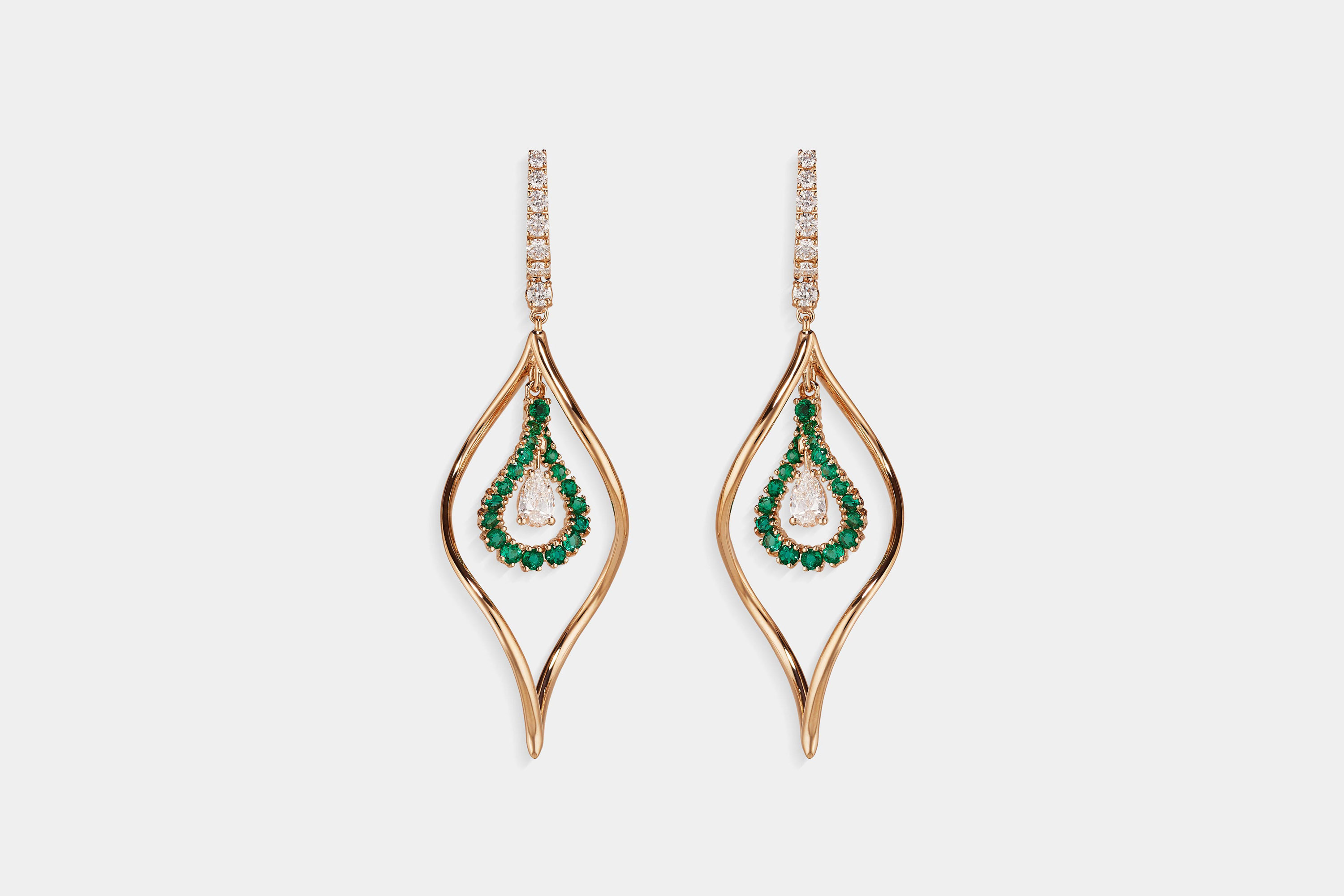 La montatura in oro rosa è decisamente particolare, perché richiama molto i classici della gioielleria. Realizzati in maniera impeccabile dagli artigiani Crivelli, questi orecchini si fanno notare soprattutto per il colore. L’intensità degli smeraldi qui incastonati colpisce sin dal primo sguardo. Ed indossandoli si capisce subito che sono delle vere opere d’arte.