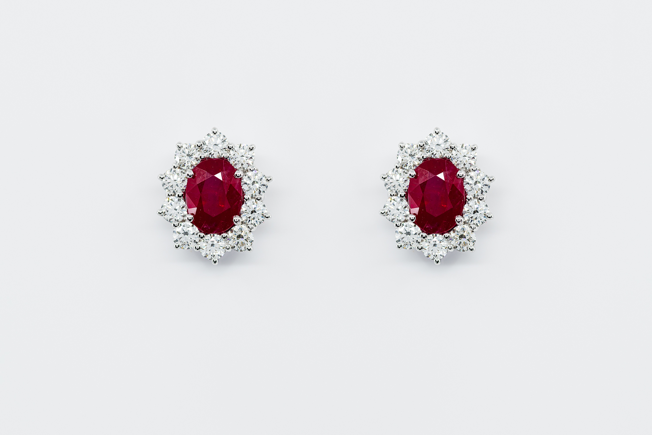 I rubini taglio ovale sono in perfetta armonia con i pavé di diamanti che li circondano. Diamanti dalla caratura variabile in base al modello, dal taglio tondo brillante e dalla purezza contraddistinta dalla sigla “Si1”. Il colore varia invece in base al modello scelto, ma parliamo comunque di colorazioni molto alte come “F” e “G”. Delicati e luminosi come pochi, quindi. E di grandissimo effetto.