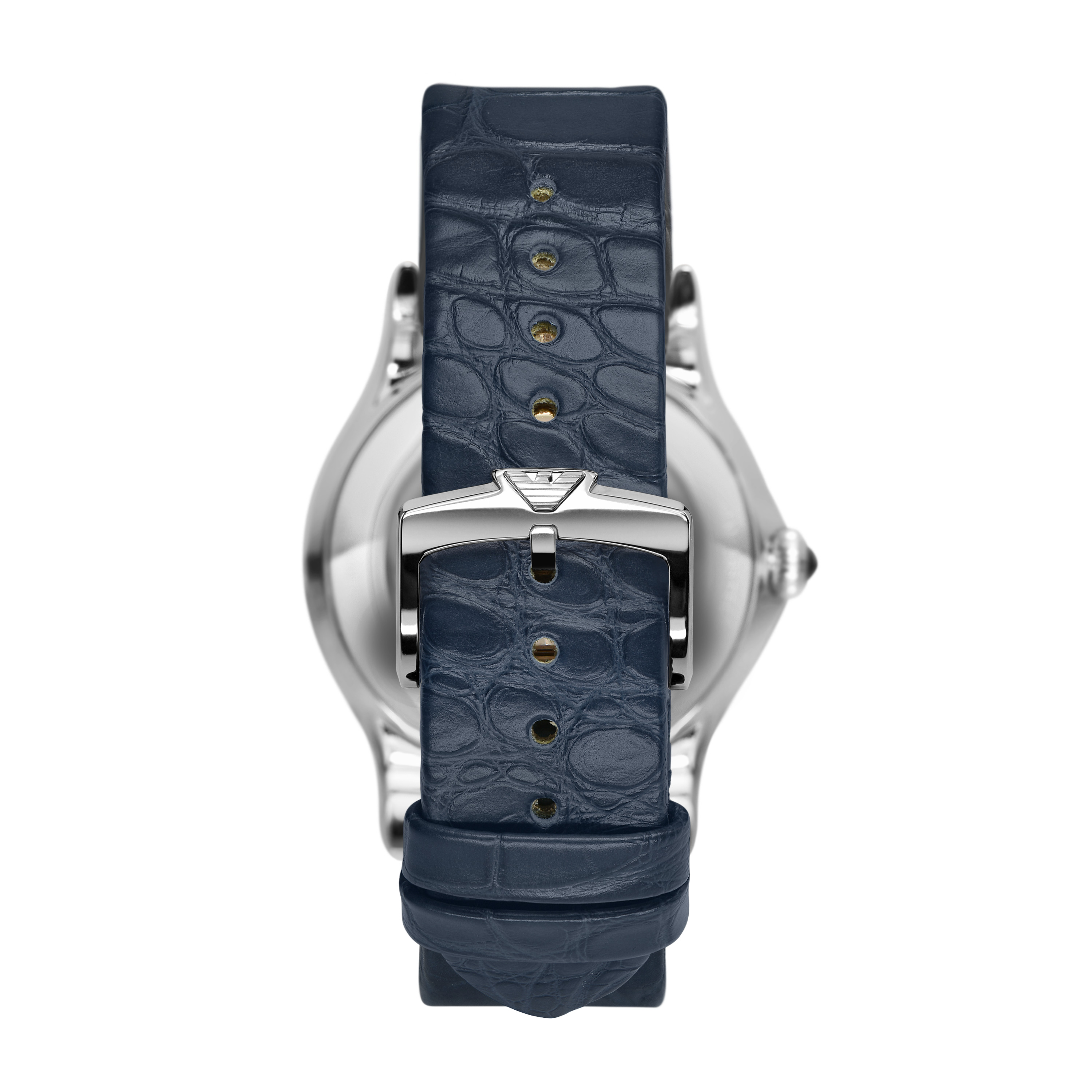 Il vetro zaffiro antiriflesso della cassa vi assicurerà invece la perfetta leggibilità dell’ora. Meravigliose sono le lancette color oro rosa e gli indici a bastone, molto eleganti e “retrò”. Completa infine il tutto il meraviglioso ed originale cinturino blu in pelle di alligatore con la intramontabile fibbia ardiglione.
