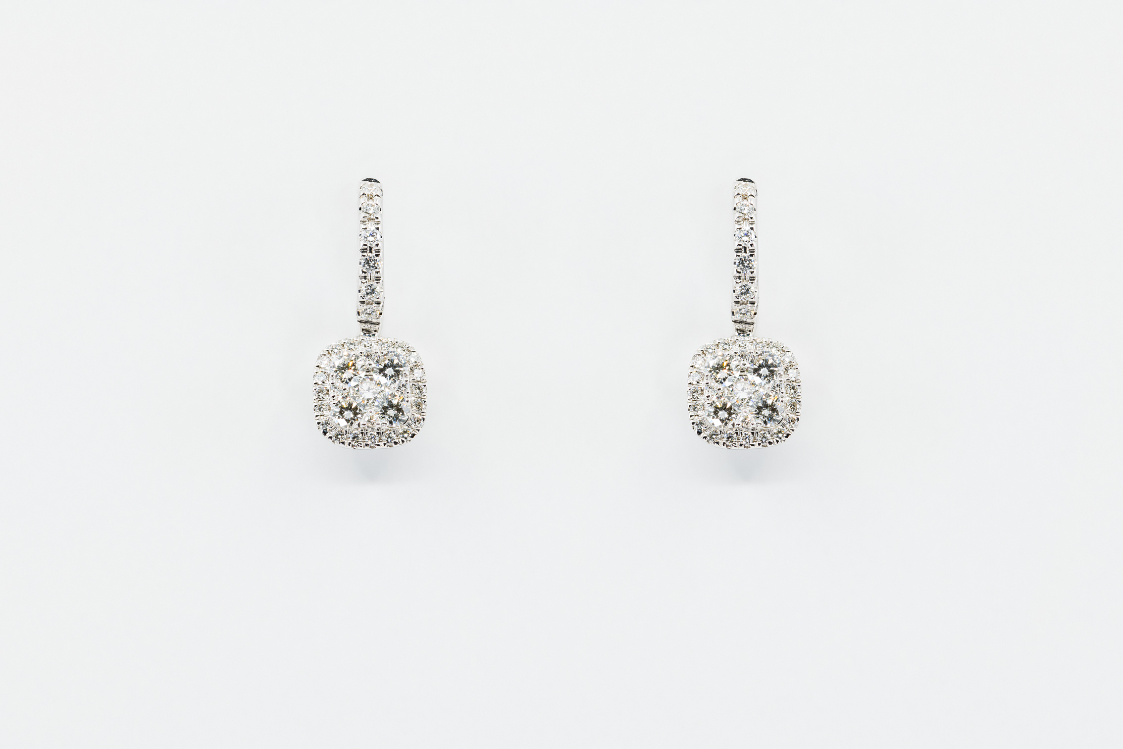 Orecchini quadrati pendenti Liberty White sono tra i gioielli più innovativi e desiderati della Gioielleria Casavola di Noci (BA). Un paio di orecchini pendenti in oro bianco con diamanti realizzati interamente dai fratelli Dario e Fabio Casavola, qui nella doppia veste di gioiellieri e gemmologi.